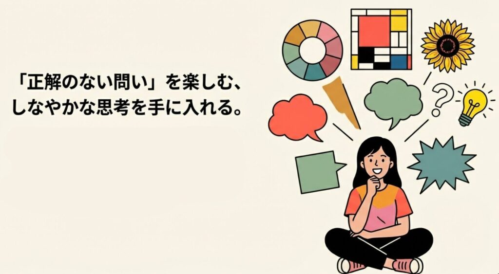 美術鑑賞は、正解のない問いに向き合う作業です。作品をじっくり観察し、自分なりに解釈する習慣は、日常のストレス解消やマインドフルネス、そして物事を多角的に見る柔軟な思考へと繋がります。