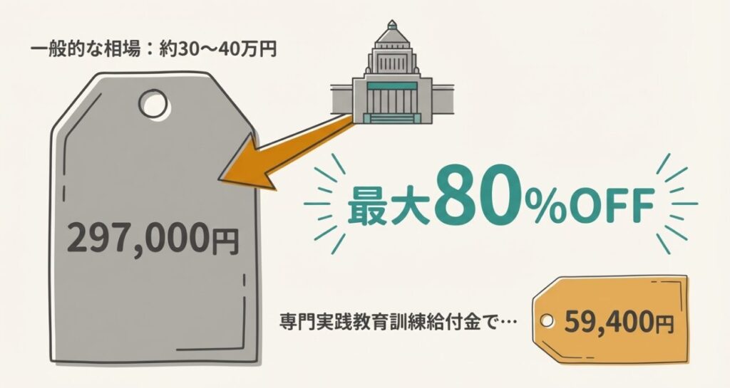 でも、もっとすごいのがここから。この講座は国の「専門実践教育訓練給付金」という制度の対象になっています。