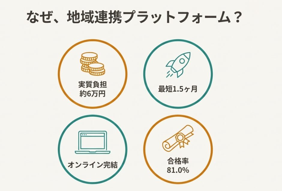 • 地域連携プラットフォームは、国の給付金を使えば5万円台で受講できる驚きの安さ!