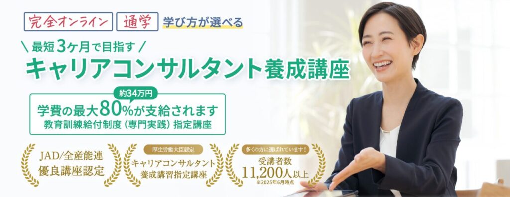クライエントの心の動きを深く理解するための心理学的アプローチを重視しており、人間関係やメンタルヘルスに強いキャリアコンサルタントを目指す方に最適です。
