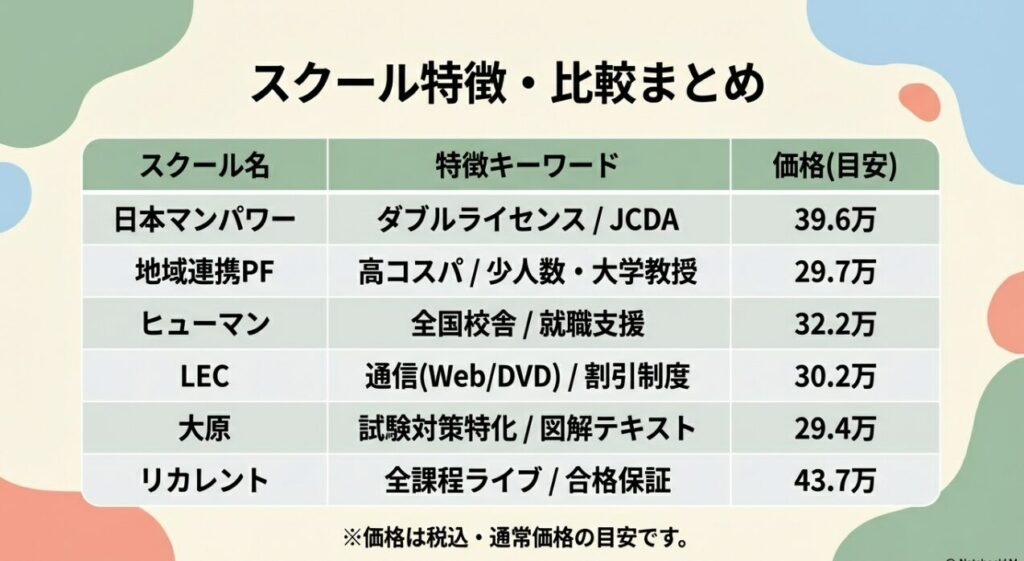 特に人気の高いスクールについては、費用・学習スタイル・サポート体制を徹底比較しました。最適な講座を見つけるためにぜひチェックしてくださいね!